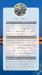 多くの国の人が集うイギリスに移住し、大学で教育・心理学を専攻。「自分は世界に救われた」と似た境遇の子どもを海外に排出するため、英会話をきっかけに、世界に進出する子どもの支援を行う。